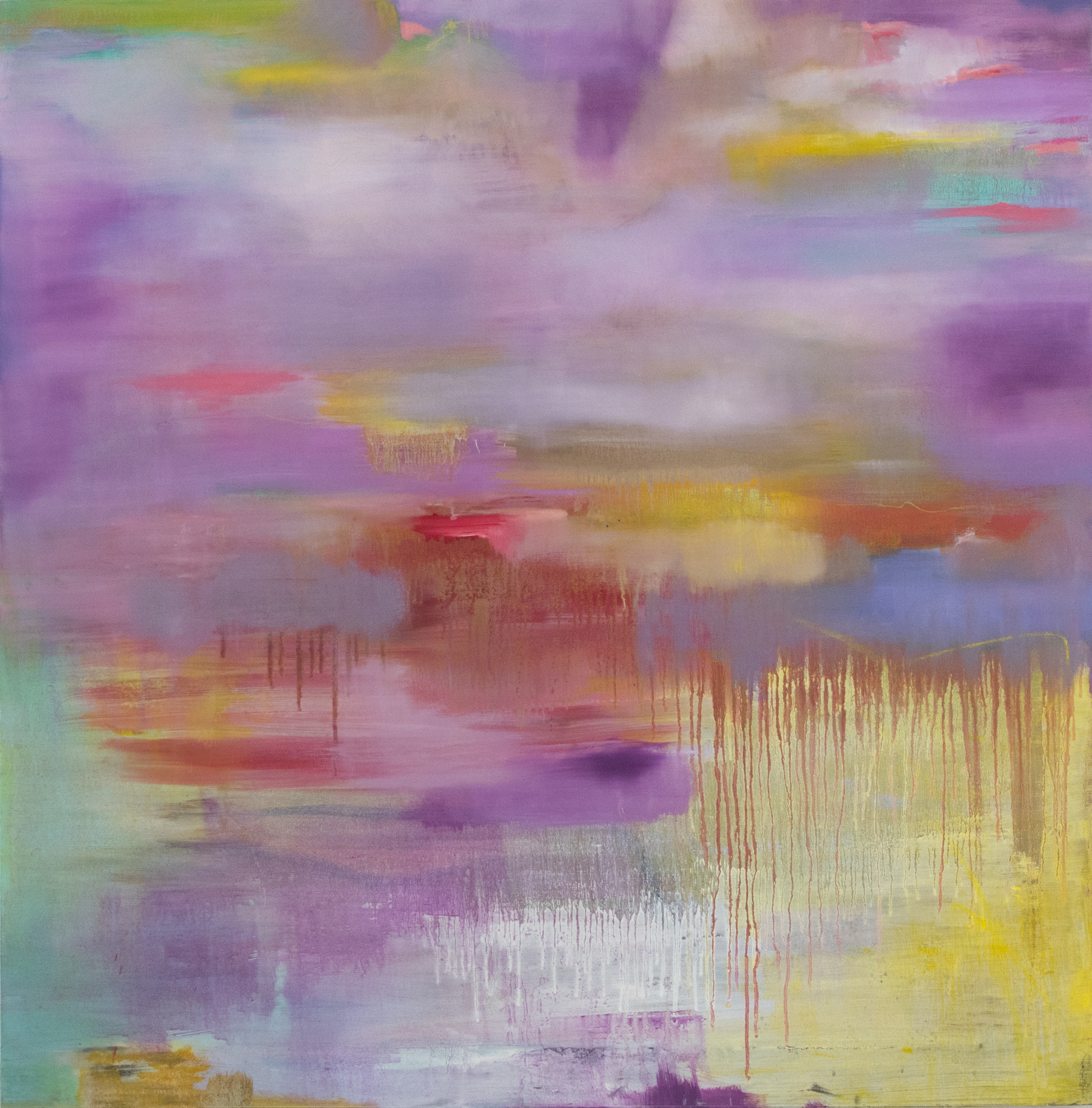 SA: En la fase inicial de planteamiento y mancha general, soy caótica e impulsiva hasta reestructurar la obra. Casi entro en trance. Es como si yo no pintase, como si estuviese conectada a algo que me está diciendo lo que tengo que hacer en cada momento. Van sucediendo cosas, tomo decisiones más o menos acertadas. Descubro y me encuentro sensaciones poéticas y espirituales que trascienden el acto de la pintura.